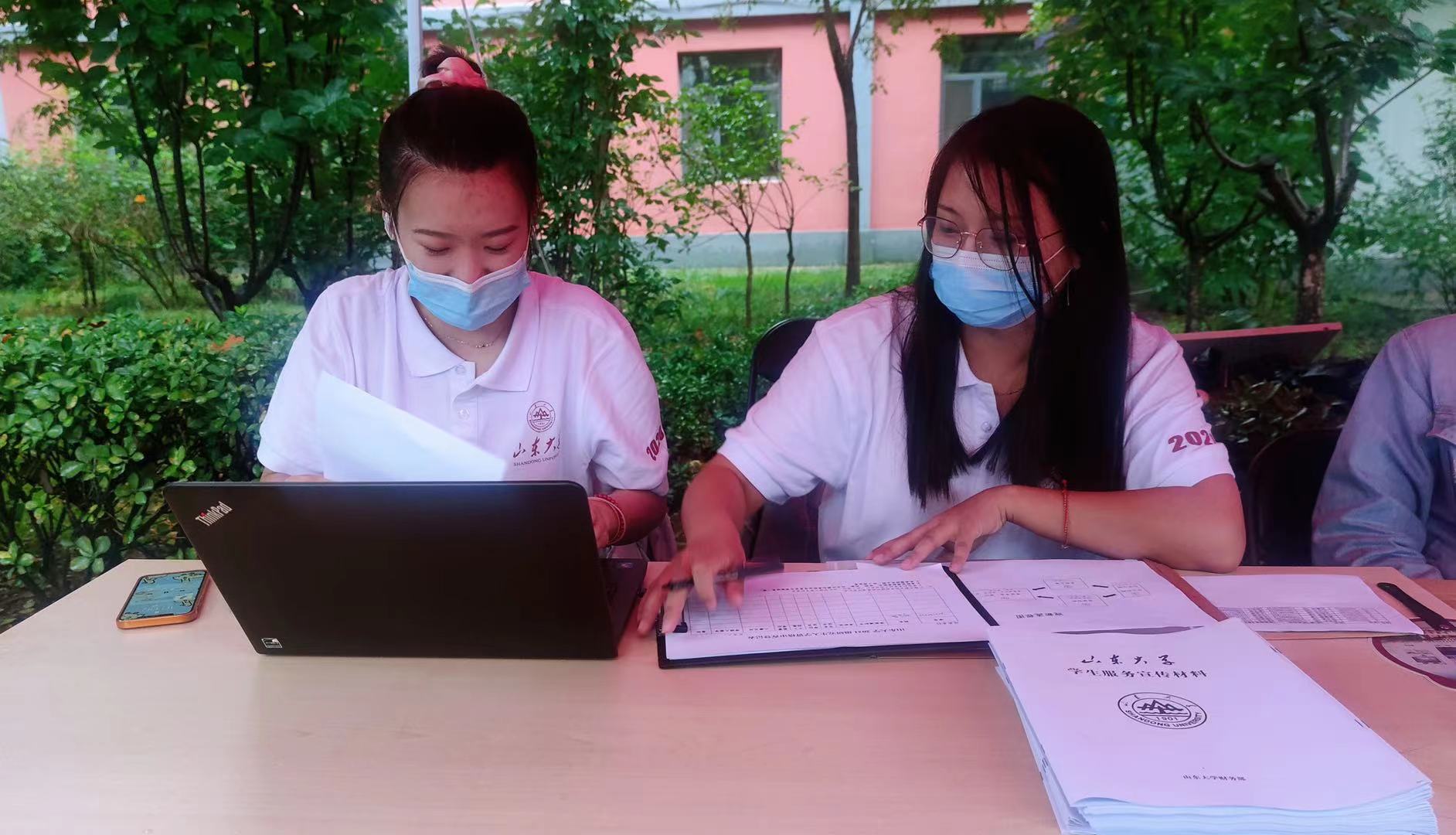 研究院领导高度重视迎新工作,迎新首日,研究院党总支书记曲刚,研究院院长、党总支副书记徐现刚等领导前往迎新现场指导工作,并对研究院志愿者的辛勤付出给予肯定和感谢,对新生学子的到来表示欢迎和祝福。