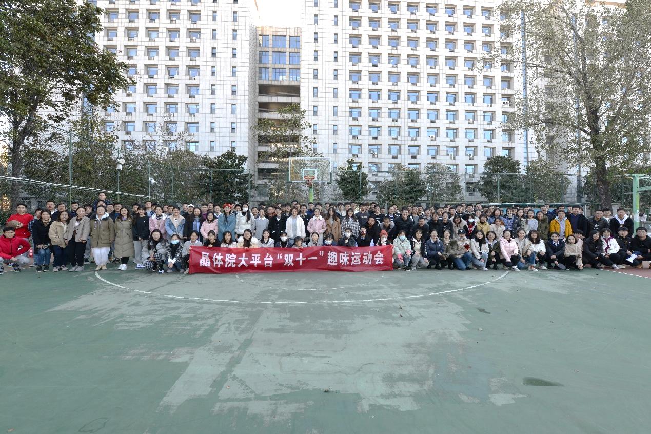 与晶体材料研究院于中心校区篮球场举办“双十一”趣味运动会。学院党委书记曲刚、晶体材料研究院常务副院长于浩海、副院长王泽岩、h图书馆