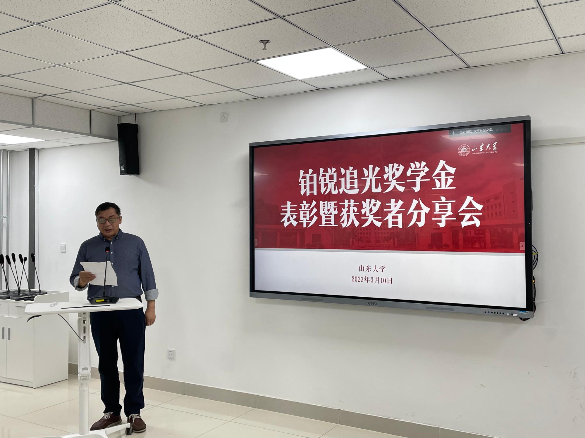 院长徐现刚教授出席会议并致辞。铂锐追光奖学金推动者何京良教授,部分教师代表,首期奖学金获奖学生,部分学生代表参加会议。会议由副院长王焕杨主持。