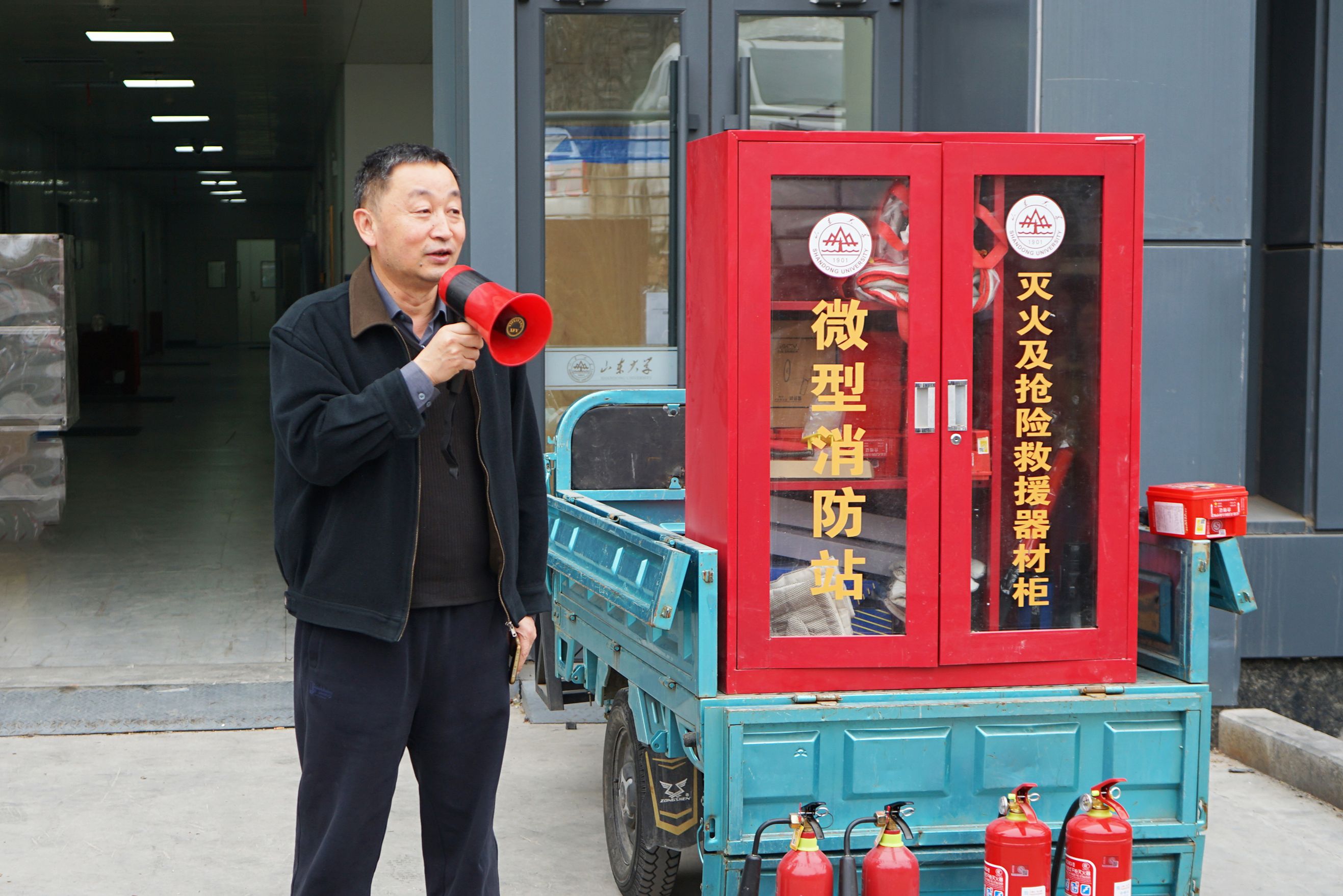 随后,杜春兴科长进行了现场指导,为大家讲解了消防应急柜中的物品清单,重点展示了二氧化碳灭火器、灭火毯、防毒面罩等消防器材的使用方法。他结合近年来全国重大火灾和学校有关案例,详细解读了火灾的形成机制和预防措施,提醒大家要时刻保持警惕,注意防范火灾的发生。