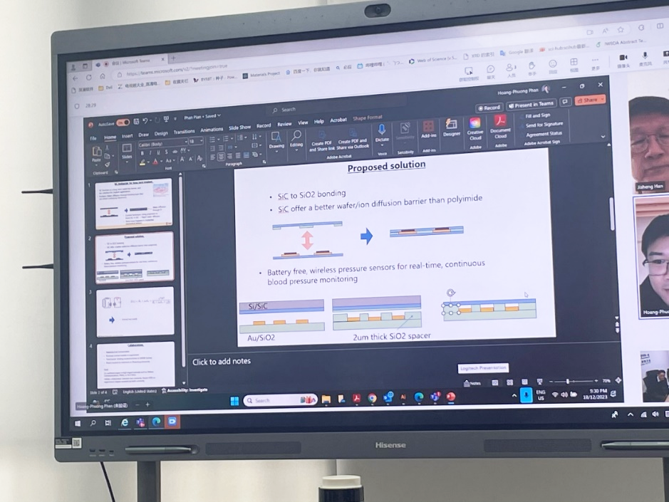 新一代半导体材料集成攻关大平台特聘教授韩吉胜邀请,澳大利亚悉尼新南威尔士大学Hoang Phuong Phan教授为新一代半导体器件团队作线上报告并进行学术交流。大平台Handoko Linewih教授、徐明升教授、崔潆心教授陪同交流讨论。