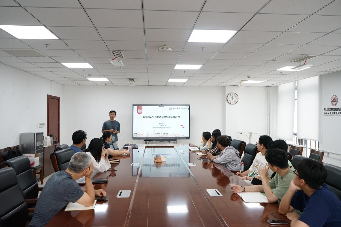 在讨论环节,陈博士与参会师生围绕石墨烯生长中的厚度精确控制、二维材料的晶格转角调控、衬底台阶结构调控等晶体材料领域的关键技术问题展开了深入细致的交流与探讨。