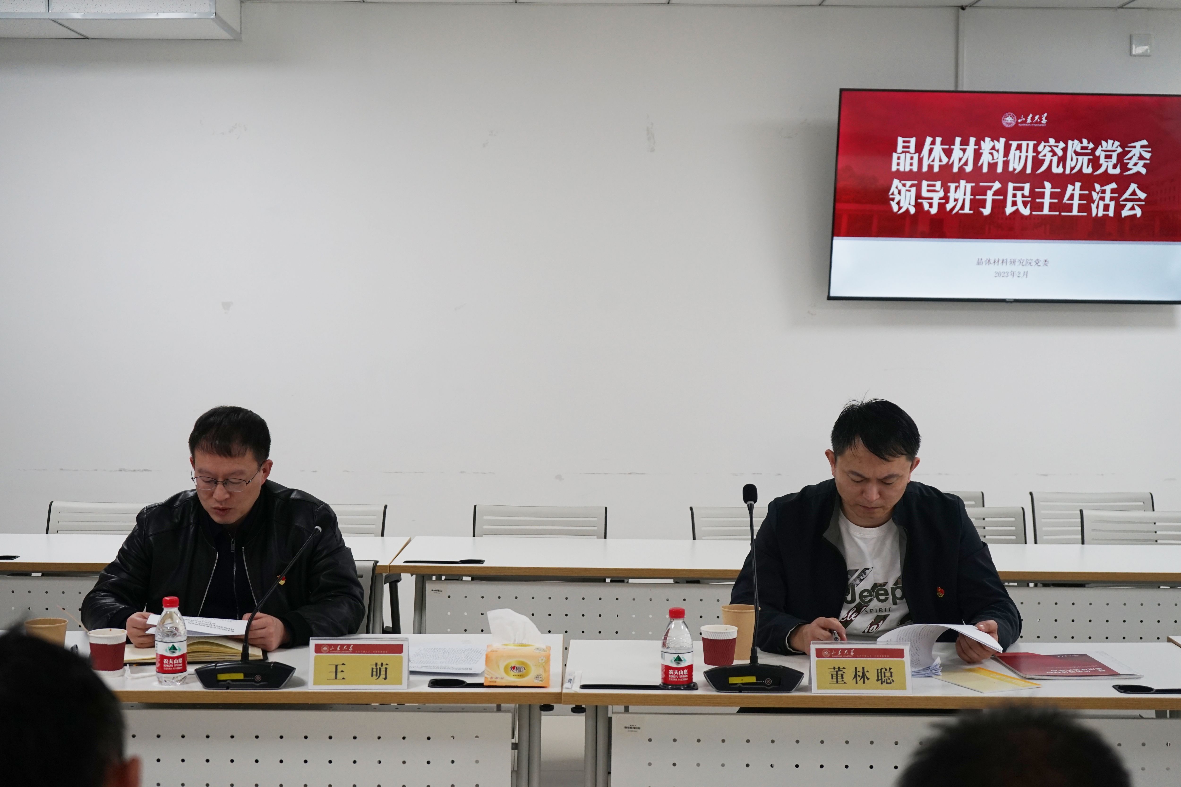 2月17日,集成攻关大平台、晶体材料研究院领导班子召开2022年度民主生活会。学校第二指导组副组长王萌同志、成员董林聪同志到会指导,王萌作点评发言。晶体材料研究院党委书记曲刚主持会议。