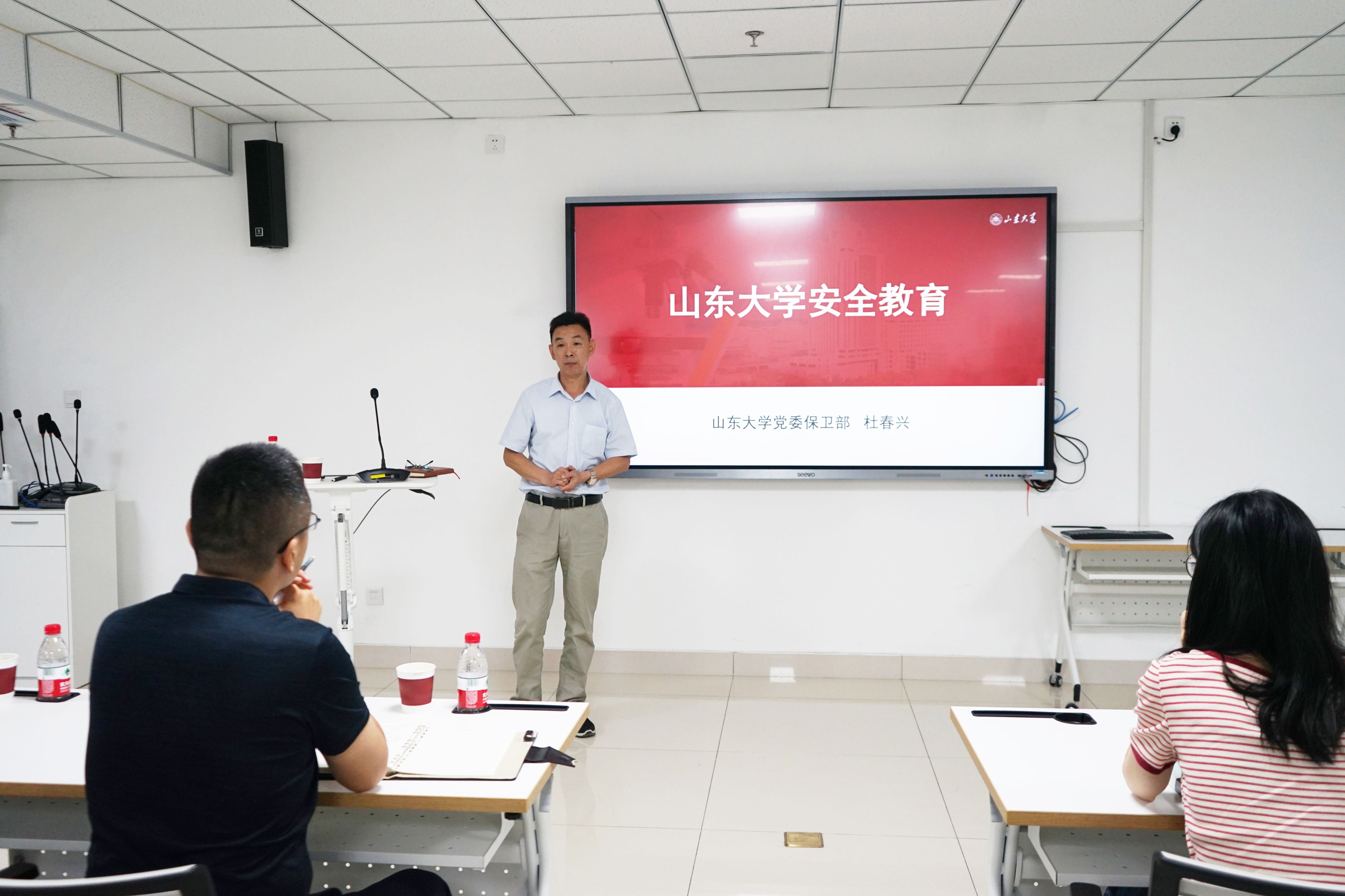 安全教育培训”。讲解结束,杜春兴为大家进行消防用品使用培训,对消防设施识别、消防器材使用、消防常识和应急处置方案进行详细讲解。杜春兴表示实验室是高校人才培养、科技创新的核心场所,确保其安全是师生生命财产安全、校园安全稳定、科研创新和人才培养的重要前提。