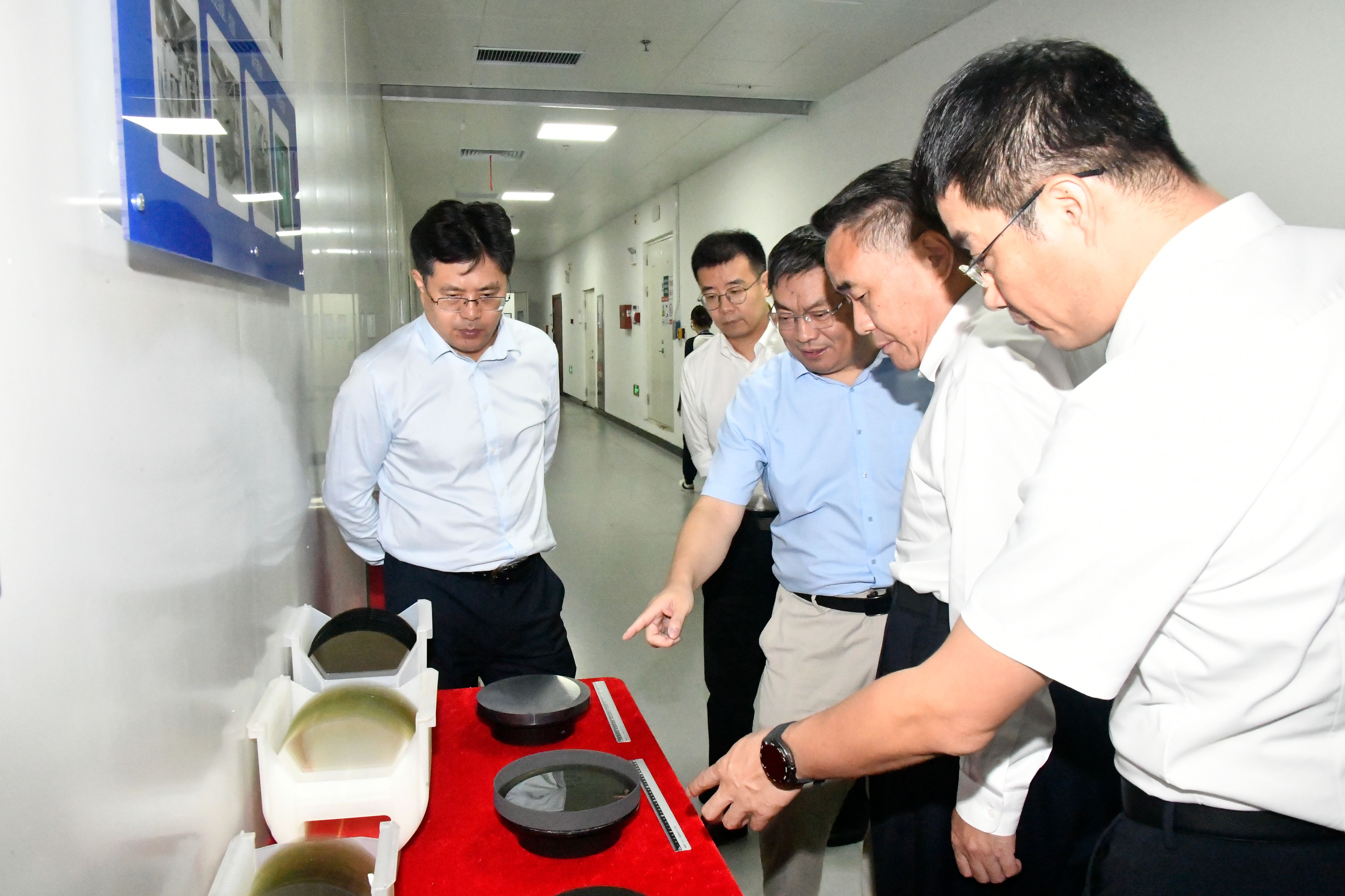 座谈后,邹庆忠一行参观考察了晶体材料国家重点实验室和新一代半导体材料集成攻关大平台,详细了解了h图书馆