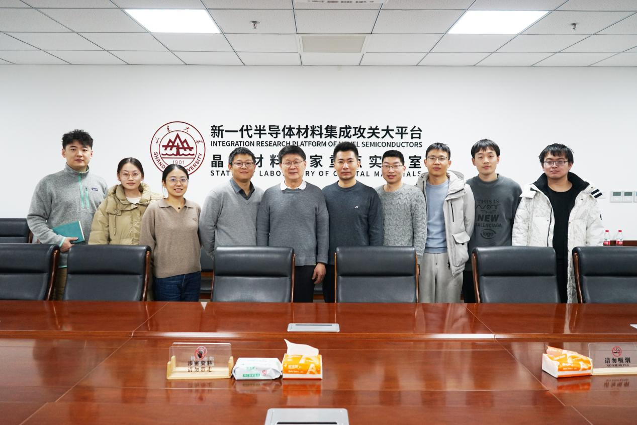 院长徐现刚教授,碳化硅团队陈秀芳教授、郁万成教授,氮化物团队张雷教授等与校领导进行了汇报交流。