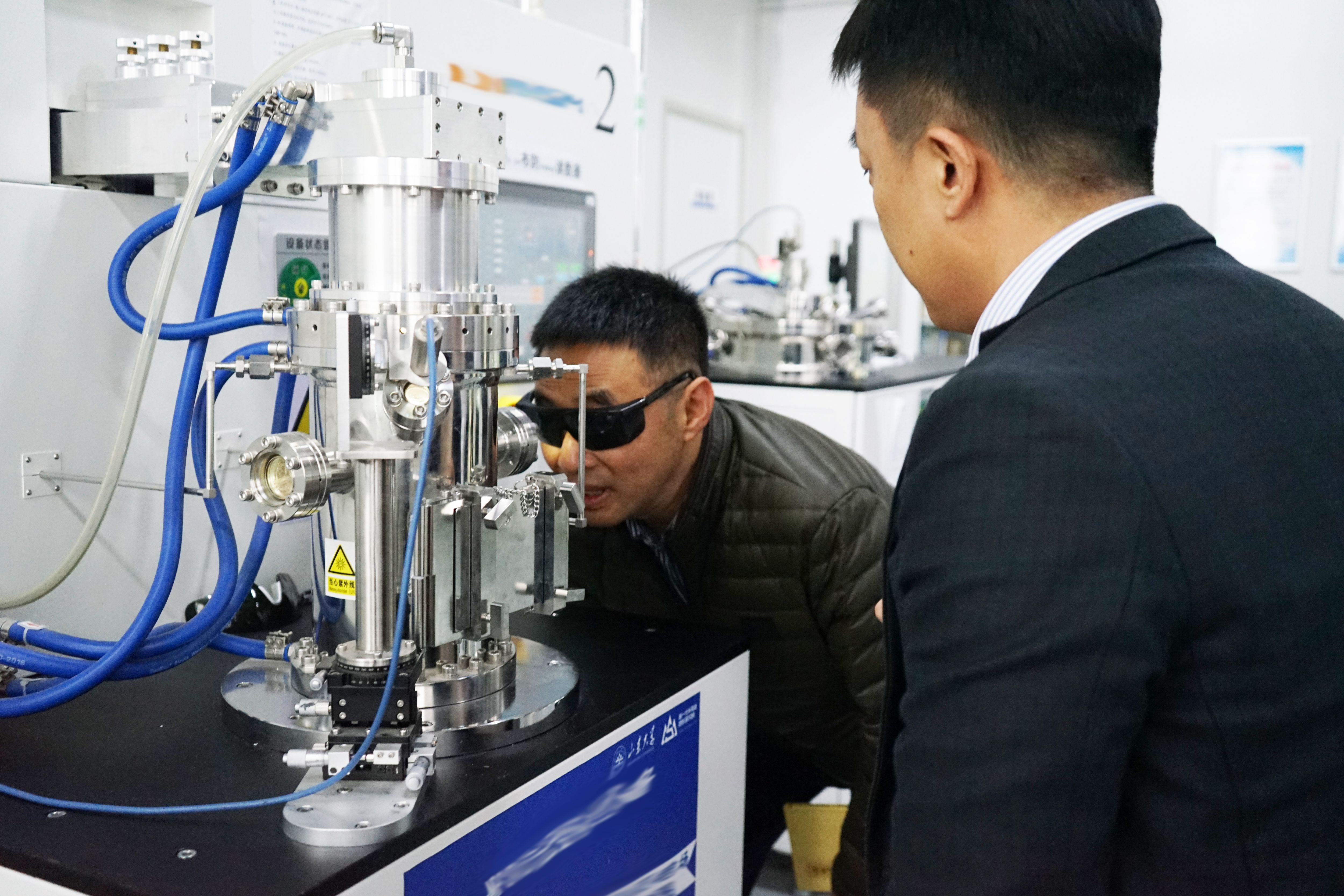 的发展历程和建设成效,参观了晶体研发车间中半导体单晶生长—衬底加工—外延生长—器件制备等全链条研发线,高度赞扬了h图书馆