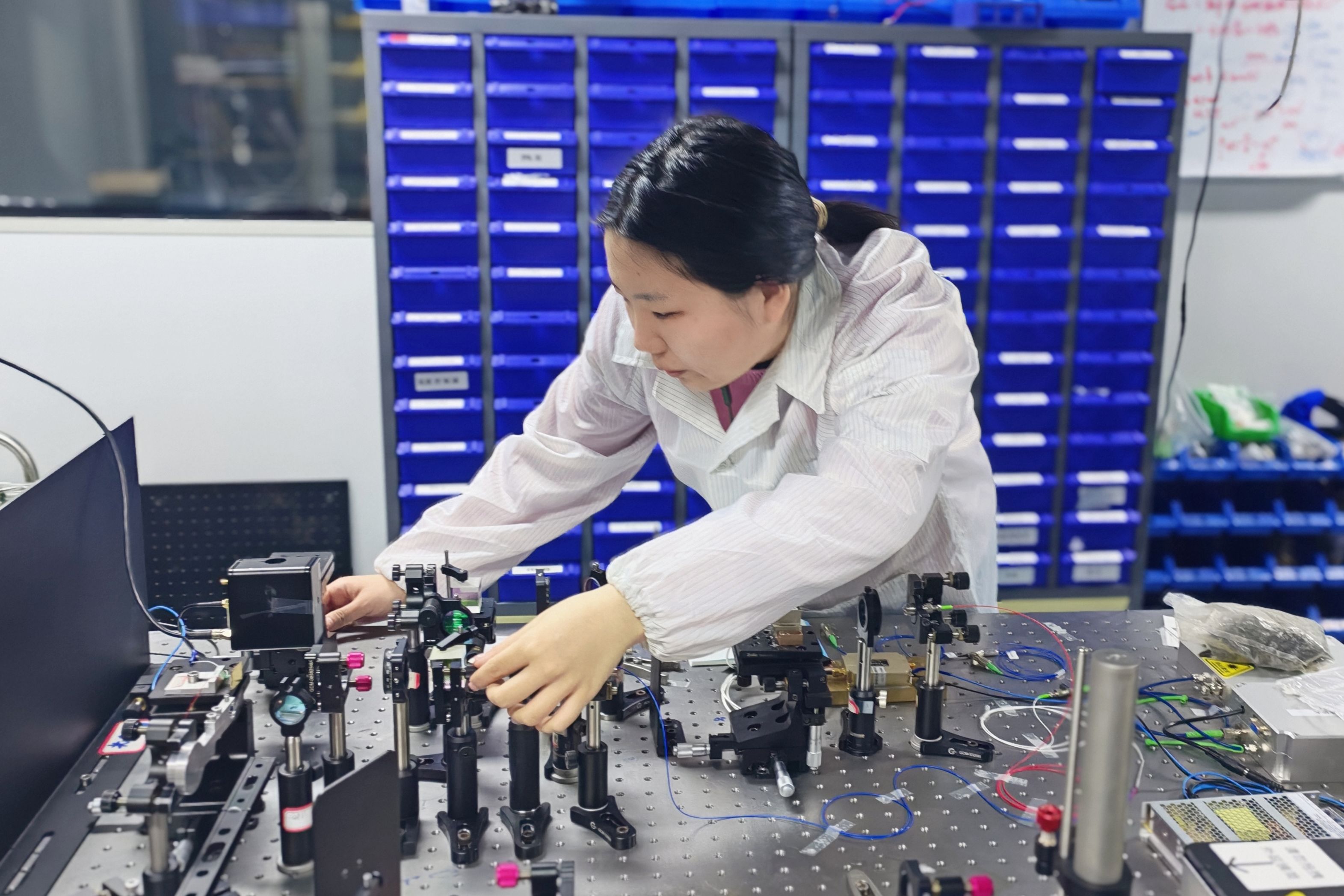 图:半导体与激光技术团队硕士研究生殷媛奋斗在实验室