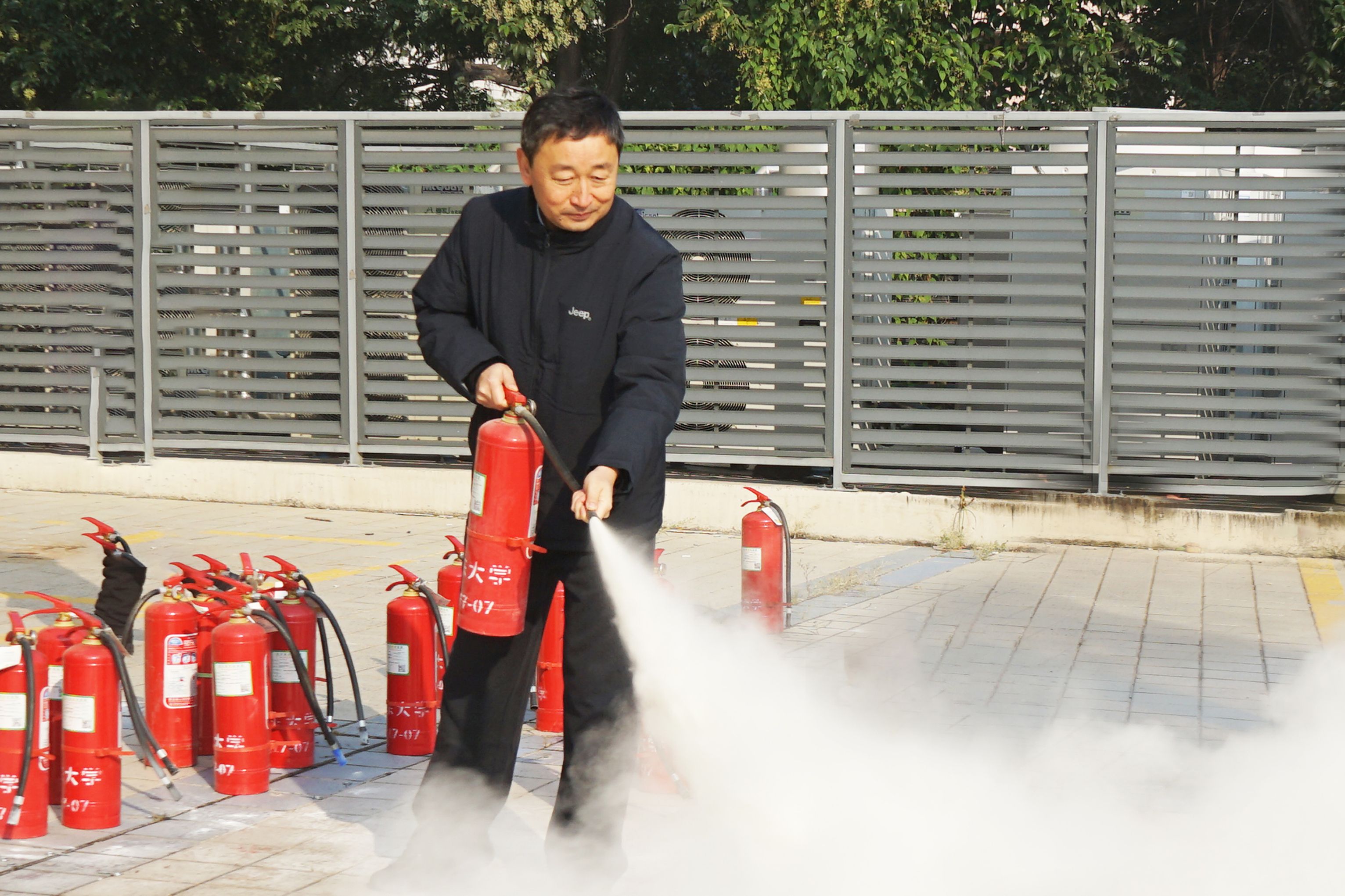 为保证活动安全顺利开展,半导体研究院、晶体院与保卫处提前制定详细消防演练方案,对消防应急演练现场进行认真布置与工具准备。上午九时,师生在生命北楼东侧广场集合,杜春兴对大家进行消防安全培训,讲解消防常识和应急处置方案,并作消防器材使用详细讲解。培训结束,公安处工作人员在广场适当位置点燃火苗,组织师生进行灭火演练,每位到场师生积极参与演练,保证每人都能掌握消防疏散与灭火实战的基本操作。