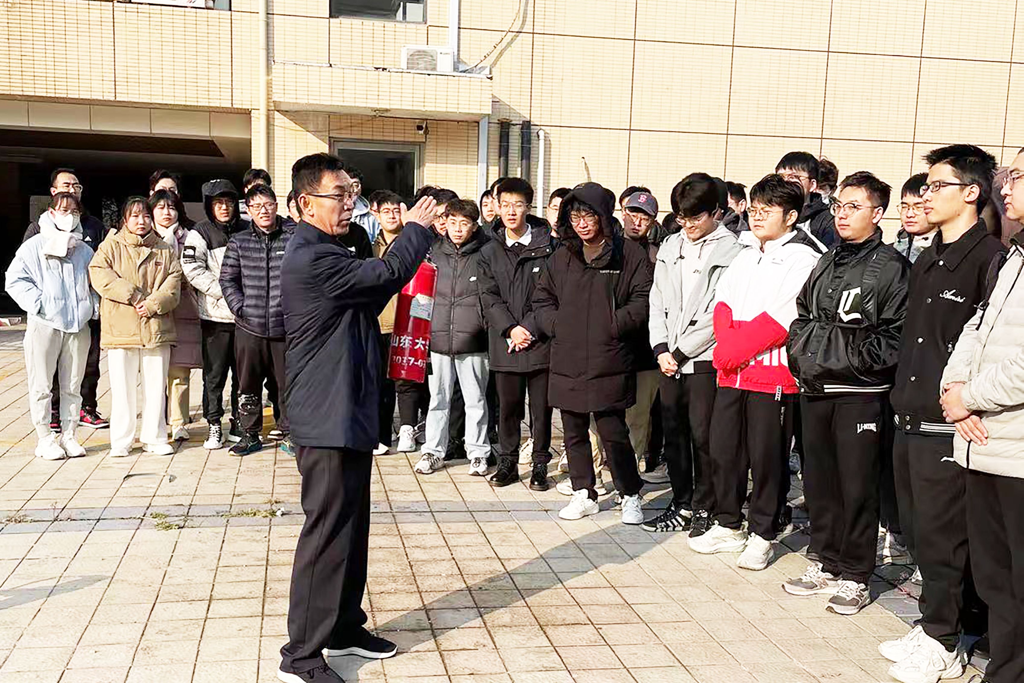 与晶体材料研究院举行消防灭火实战演练活动。活动在生命北楼东侧广场展开,邀请党委保卫部科长杜春兴为平台师生进行现场指导,活动由半导体研究院副院长贾志泰主持。半导体研究院与晶体院党委书记曲刚、副书记赵希波,安全管理人员与2023级全体学生参加活动。