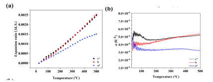 如图4所示,Si掺杂β-(AlxGa1-x)2O3晶体的热膨胀系数显示出明显的各向异性,a*取向的热膨胀系数基本稳定,b和c*取向的热膨胀系数随温度的升高先减小后增大。为后续异质外延衬底的晶面选择提供了参考。