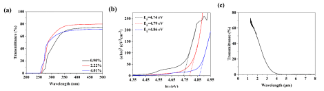 图2:Si掺杂β-(AlxGa1-x)2O3晶体透过光谱