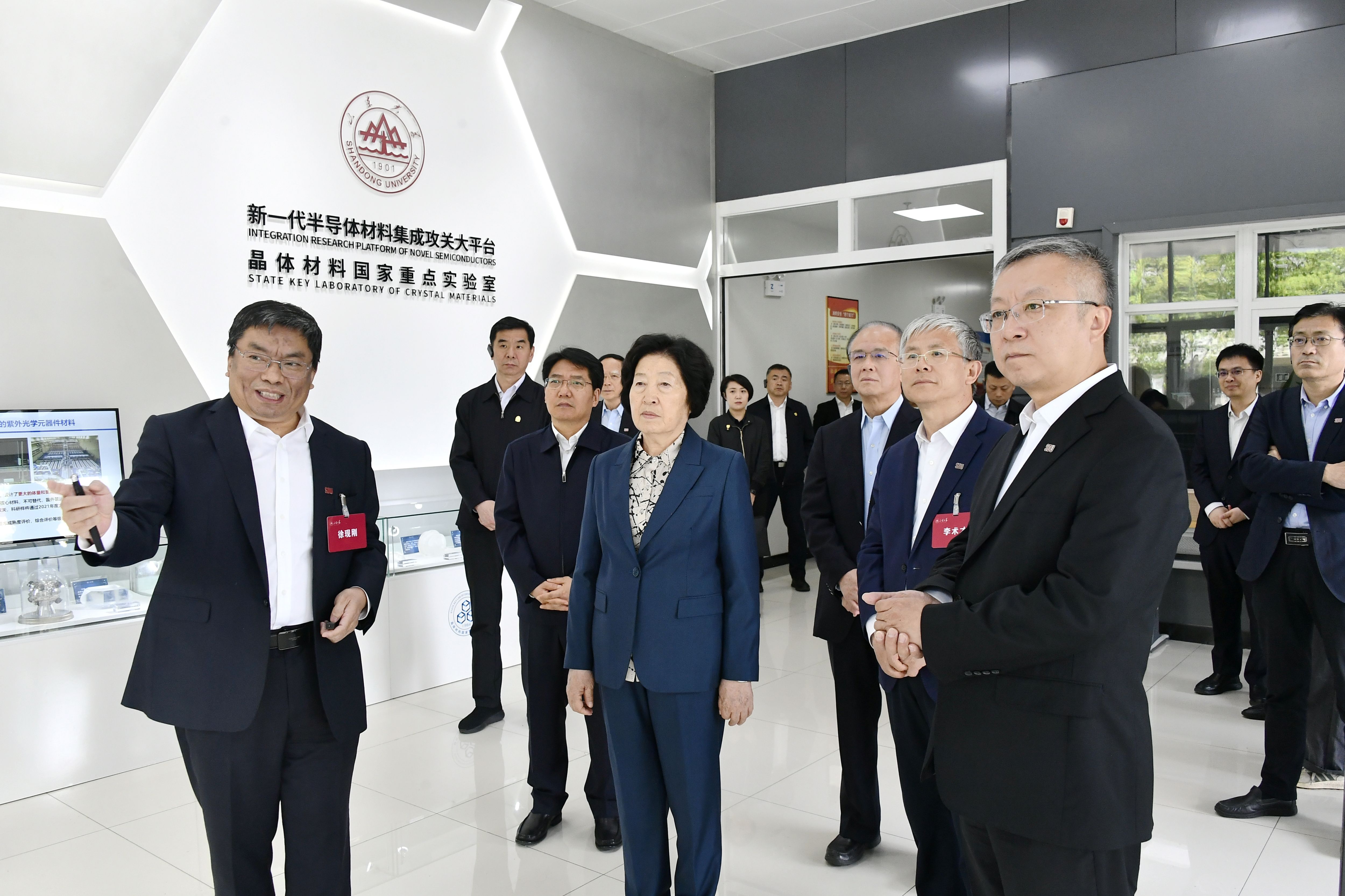 4月23日,国际儒学联合会会长孙春兰到h图书馆 参观调研。国际儒联常务副会长丁伟,山东省人民政府党组成员、副省长邓云锋,h图书馆 党委书记任友群,校长李术才陪同调研。晶体材料国家重点实验室主任、h图书馆 院长徐现刚作讲解。