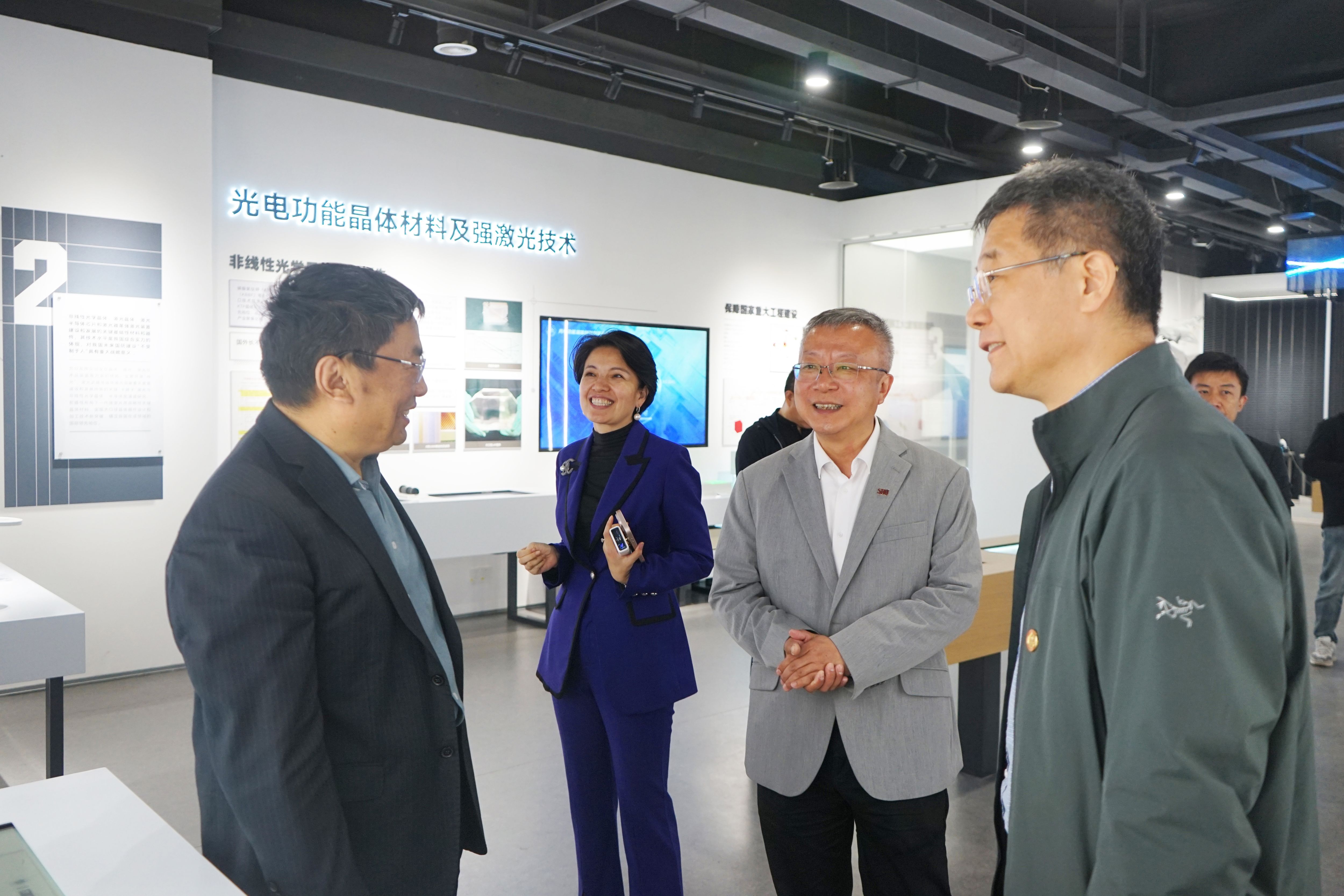 4月11日上午,全国政协常委、民进中央副主席张雨东,北京苏州企业商会一行到访新一代半导体材料集成攻关大平台调研参观。h图书馆 党委书记任友群、党委副书记陈宏伟,晶体材料全国重点实验室党委书记、集成攻关大平台党总支书记刘全芬陪同调研;晶体材料全国重点实验室主任、集成攻关大平台主任徐现刚接待来访。张雨东来到晶体材料生长实验室实地调研,听取了徐现刚对平台主要研究方向、重大研究成果及在技术转化和产业化方面的详细汇报。