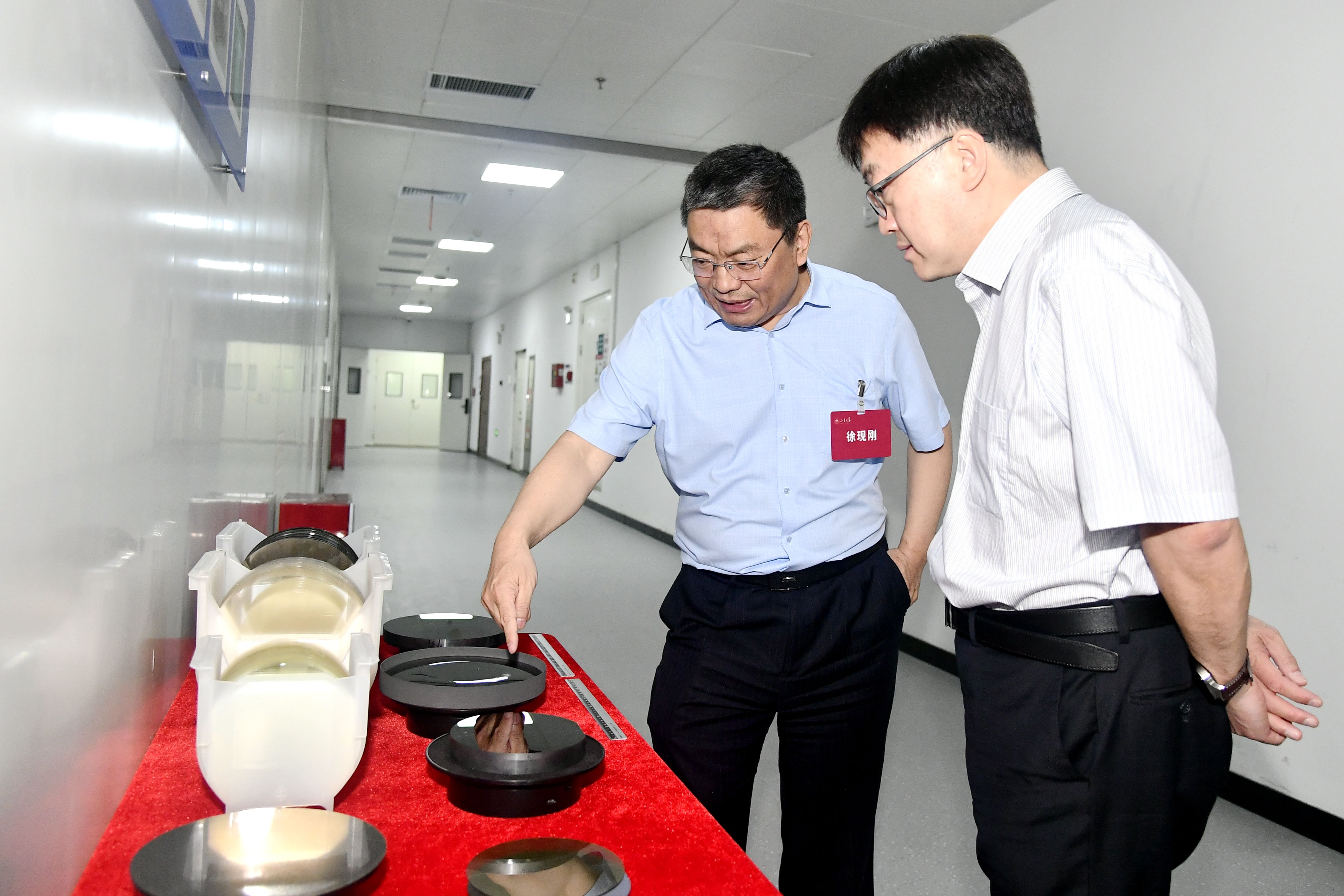 5月19日上午,中国科协党组成员、书记处书记王进展到访新一代半导体材料集成攻关大平台调研参观。晶体材料全国重点实验室主任、集成攻关大平台主任徐现刚接待来访,对平台主要研究方向、重大研究成果及在技术转化和产业化方面作详细汇报。晶体材料全国重点实验室党委书记、集成攻关大平台党总支书记刘全芬陪同调研。