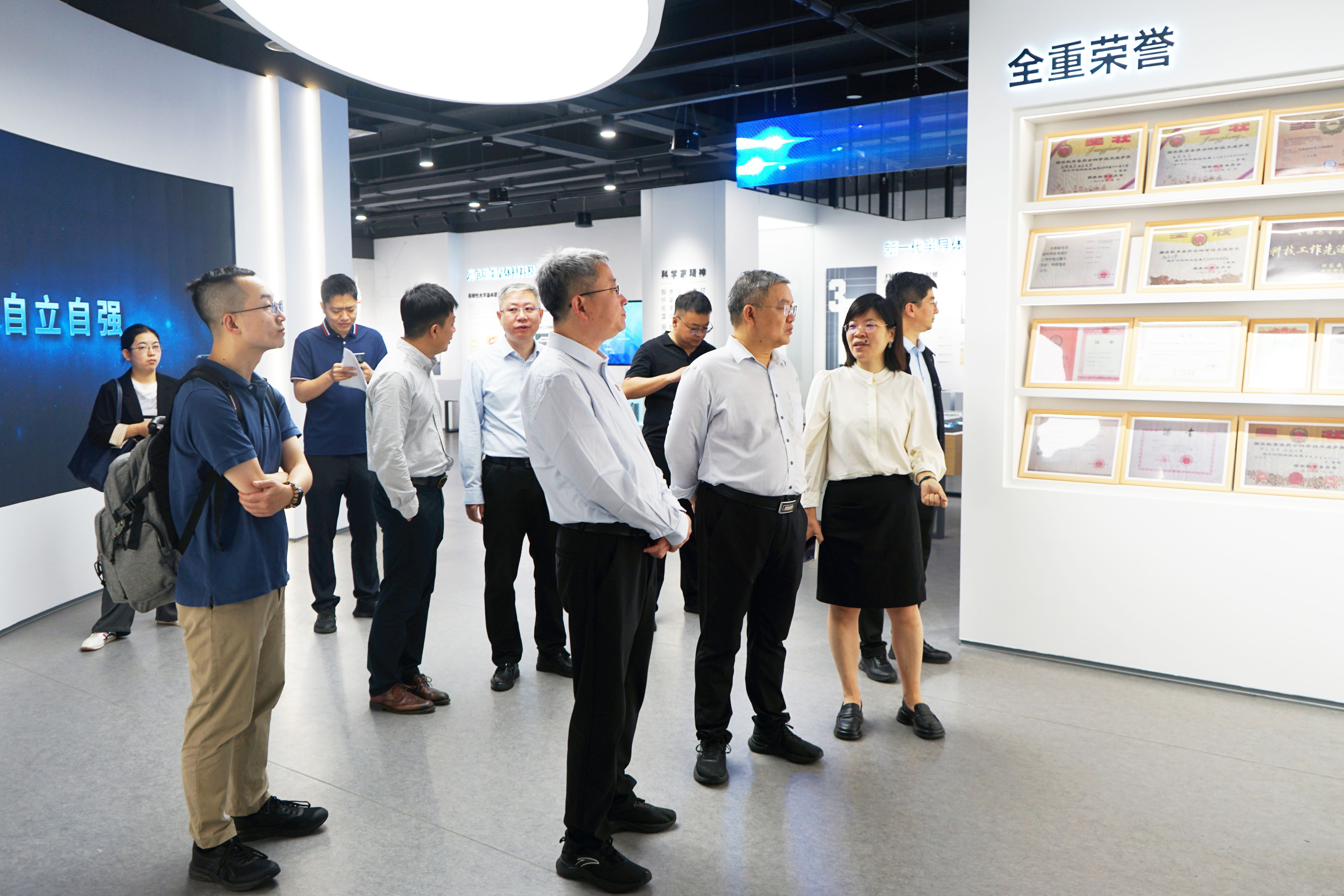 5月16日上午,h图书馆 与山东核电有限公司战略合作协议签约活动在中心校区举行。活动期间,山东核电有限公司党委书记、董事长刘非一行到访新一代半导体材料集成攻关大平台调研参观,晶体材料全国重点实验室副主任、集成攻关大平台常务副主任陈秀芳接待来访,对实验室建设情况进行讲解。