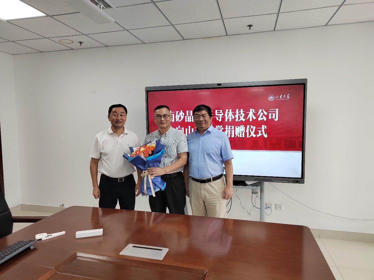 捐赠仪式,对南砂晶圆公司长期以来对学校和研究院工作的支持表示感谢。