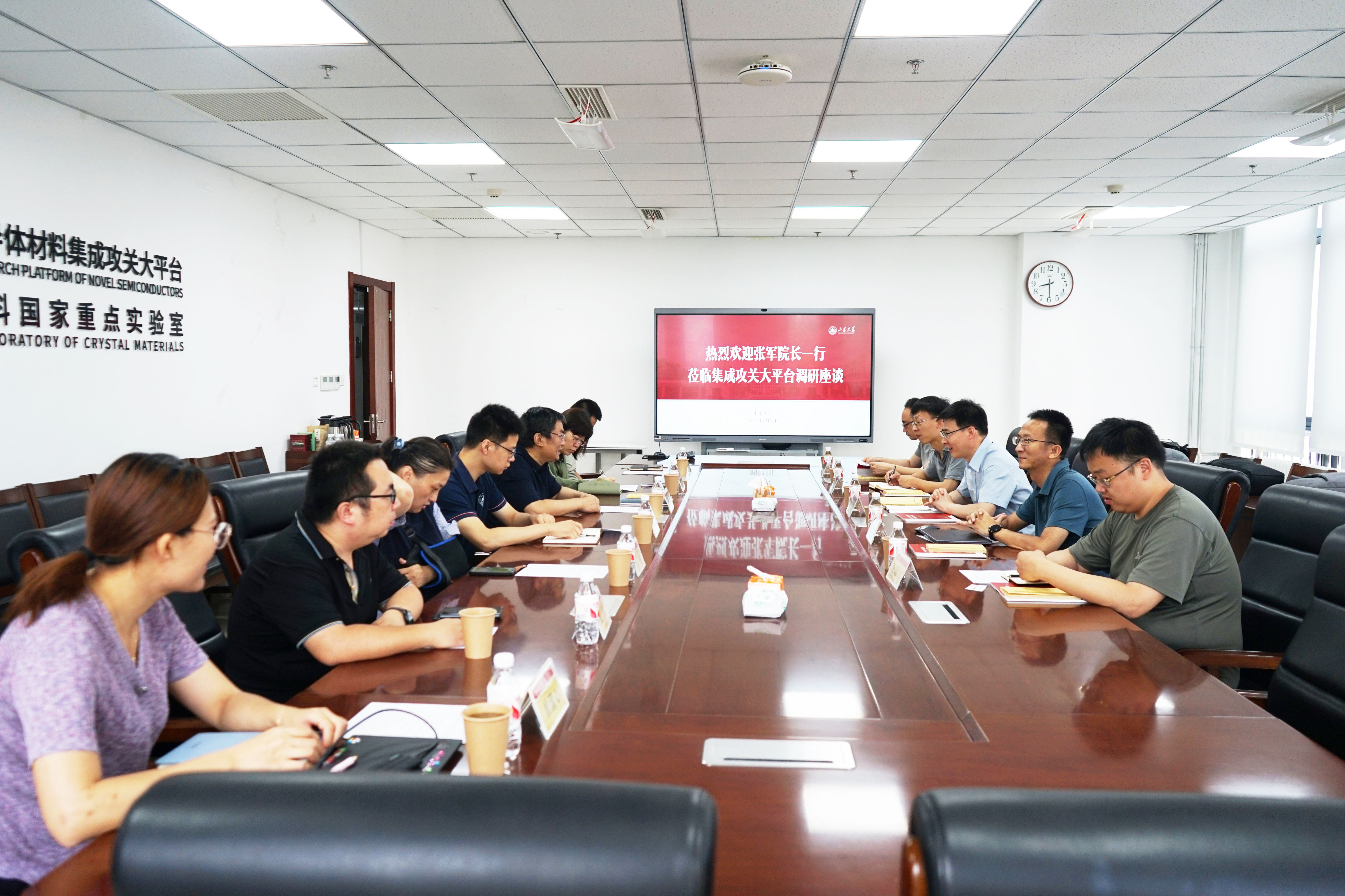 调研座谈。晶体材料国家重点实验室主任、研究院院长徐现刚教授接待来访并主持会议。