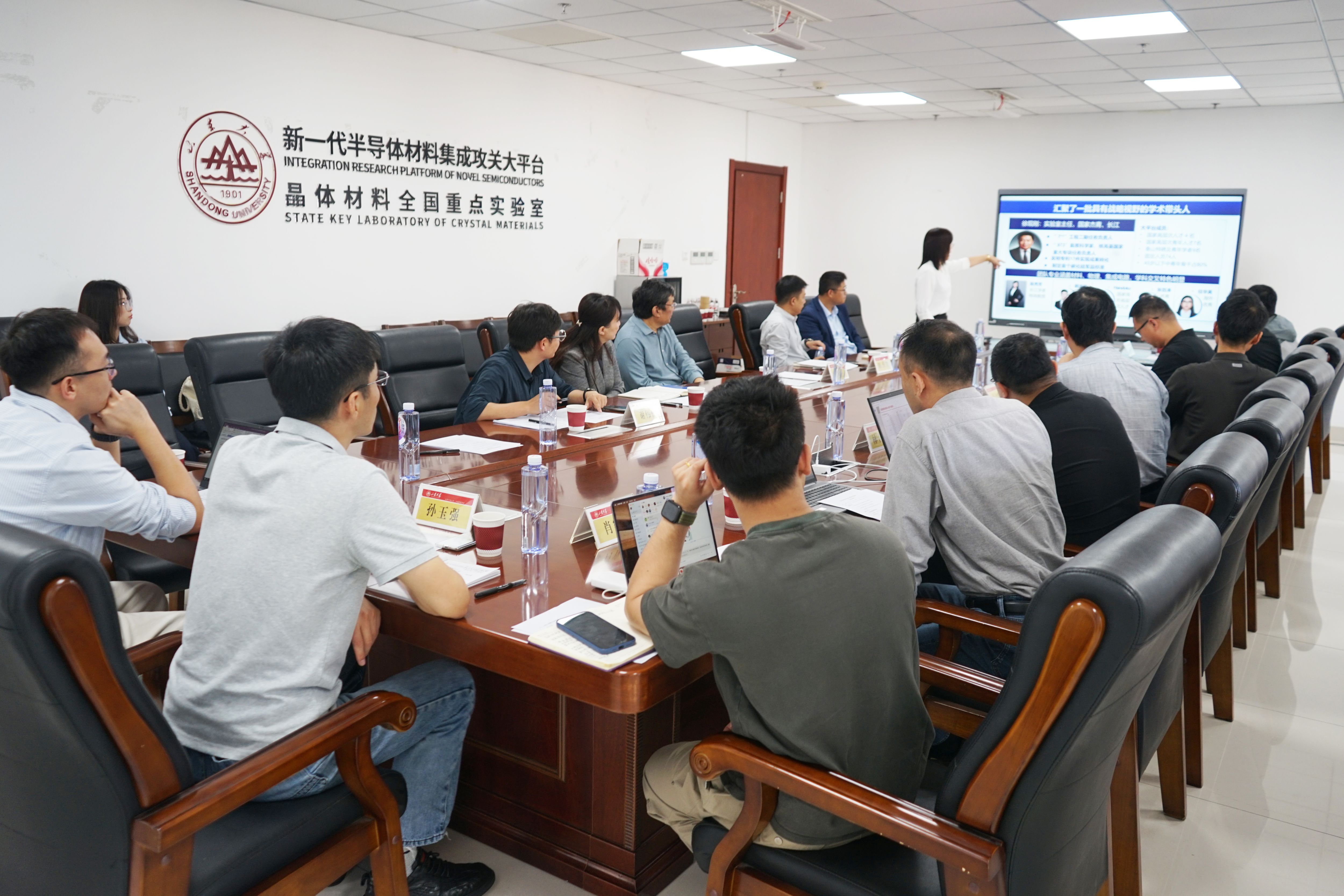 新一代半导体材料集成攻关大平台调研座谈。集成攻关大平台主任徐现刚教授接待来访并主持会议。