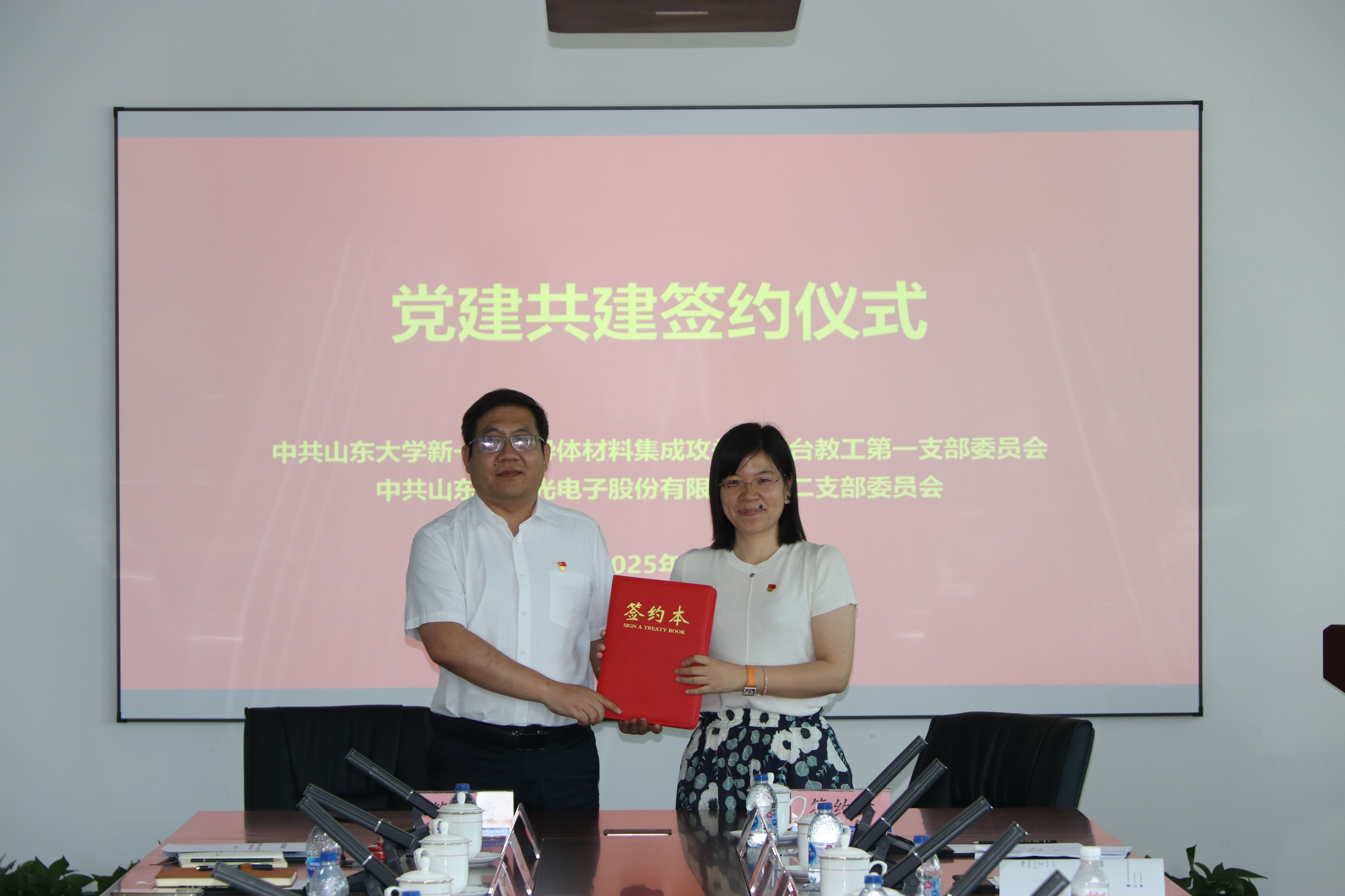 新一代半导体材料集成攻关大平台教工第一党支部与华光光电第二党支部分别签署了党建共建协议书。双方将在组织建设互促、党员队伍互动、党建载体互用、结对互帮互助、科学发展共赢等方面开展深入合作。